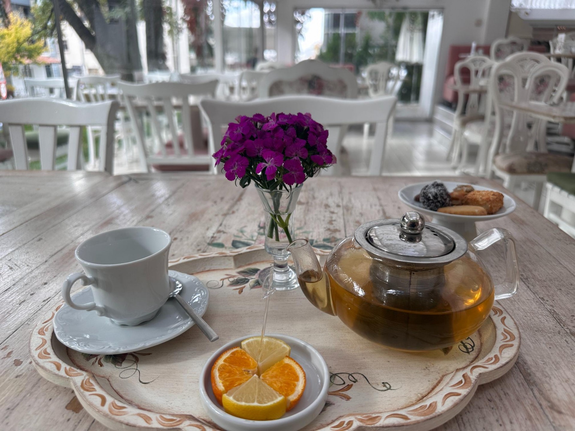 Bahçesinde bulunan yarım asırlık meşenin gölgesinde ve yemyeşil çimlerin üzerinde zamanın hızla akıp gittiğine şahit olacağınız Cafemiz; Arjantin Caddesi'nin ve hatta Ankara'nın en eski kafelerinden biri. İki katlı bir villanın alt katında hizmet veren kafe, 1993 yılından bu yana Ankaralıların hayatında. Burada, rahatınız ve memnuniyetiniz için her detaya büyük özen gösteriliyor. Beyaz rengin hakimiyetiyle sade bir şıklık yaratan mekan, nostaljiden hoşlananlar için de unutulmaz bir adres. Bu nostaljik havayı yaratabilmek adına asla fazlaya kaçmıyor ancak eksik de kalmıyorlar. Tüm ayrıntılar birbirini tamamlıyor.