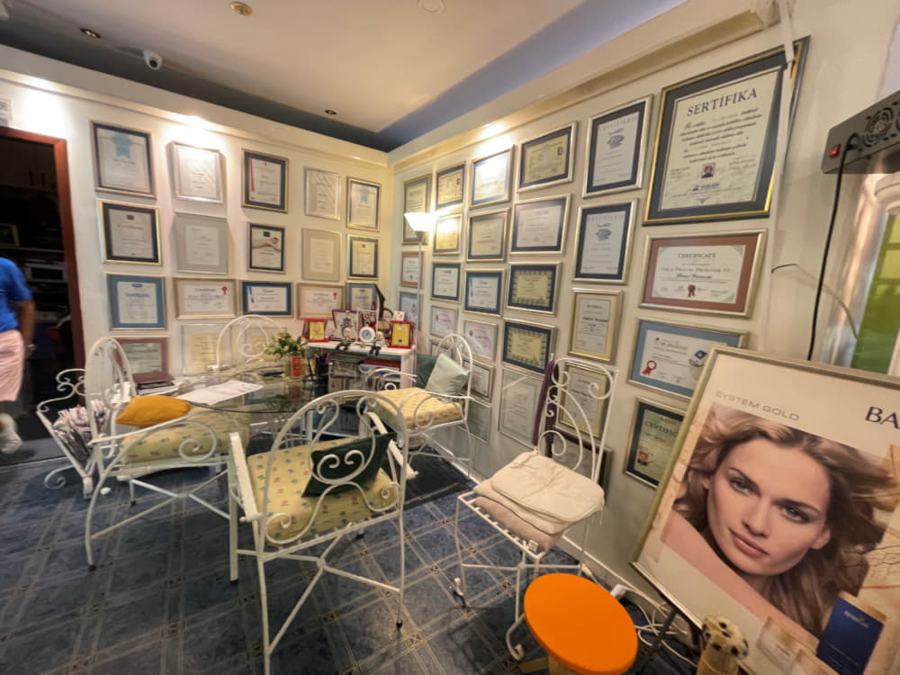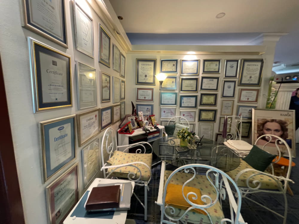 Mekâna adım attığınızda duvarda asılı sayısız belge ile profesyonelliği fazlasıyla yansıtıyor. Her biri, işinin ehli ellere kendinizi emanet ettiğinizi bir nevi perçinler nitelikte. Yeşilliklerle donatılmış mekânın bahçesi de beklerken hoş vakit geçirebilmeniz için tasarlanmış. Tek kişilik özel odalarda randevu kabulüyle; güzelliğe ve estetik görünüme dair tüm ihtiyaçlarınız burada çözümlenebiliyor.