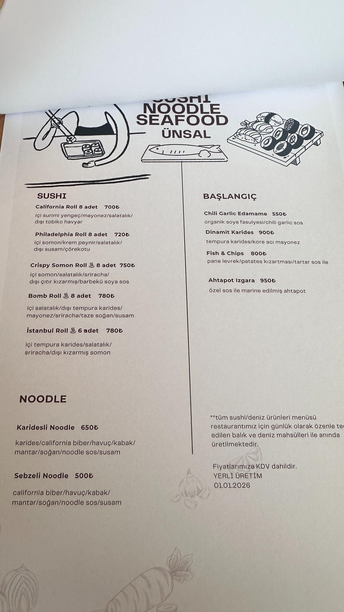 Uzak Doğu’nun meşhur lezzeti sushi seçenekleri de burada sevenleri için ikram ediliyor. Balığın yanına yakışan meze ve salatalar restoranın olmazsa olmazları.