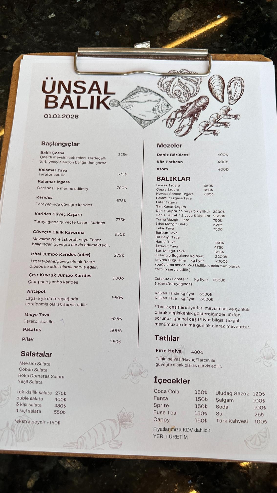 Mevsim balıklarını en lezzetli haliyle Ünsal Balık Restoranı’nda yudumlayabilmek mümkün. Misafirlerin taleplerine göre; ızgara, buğulama veya farklı şekillerde pişirme kolaylığı sağlanıyor.